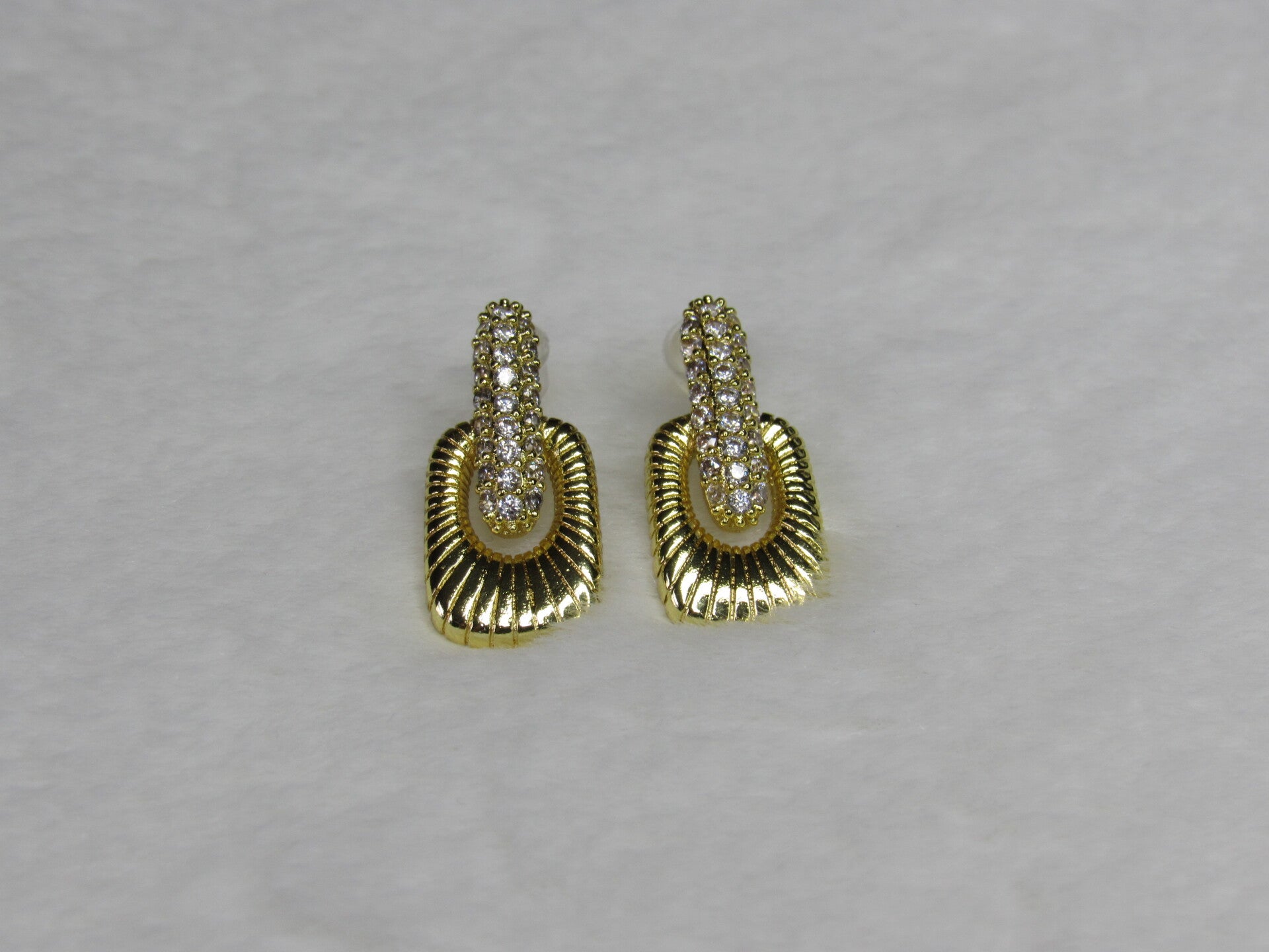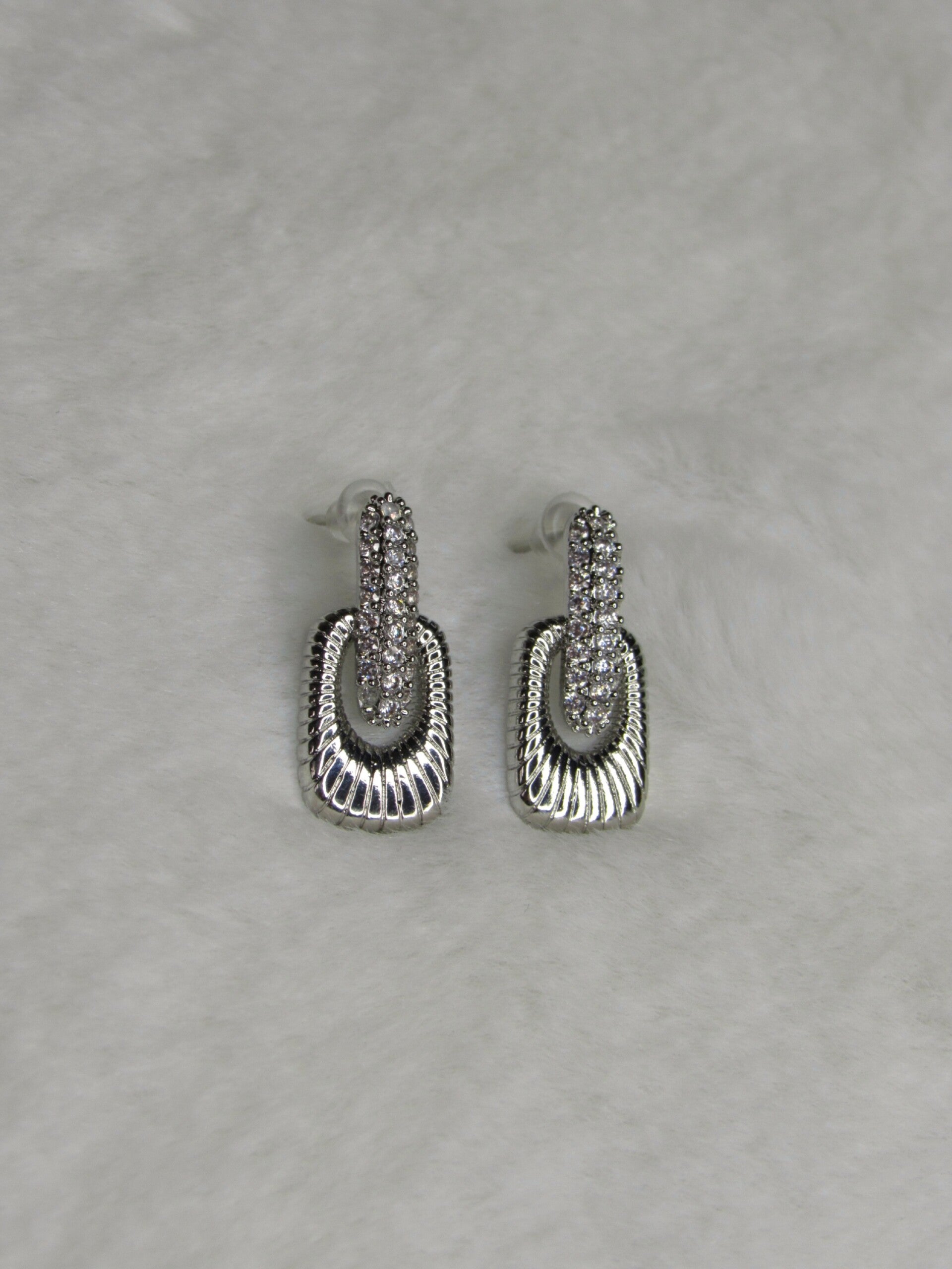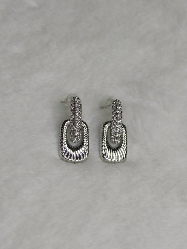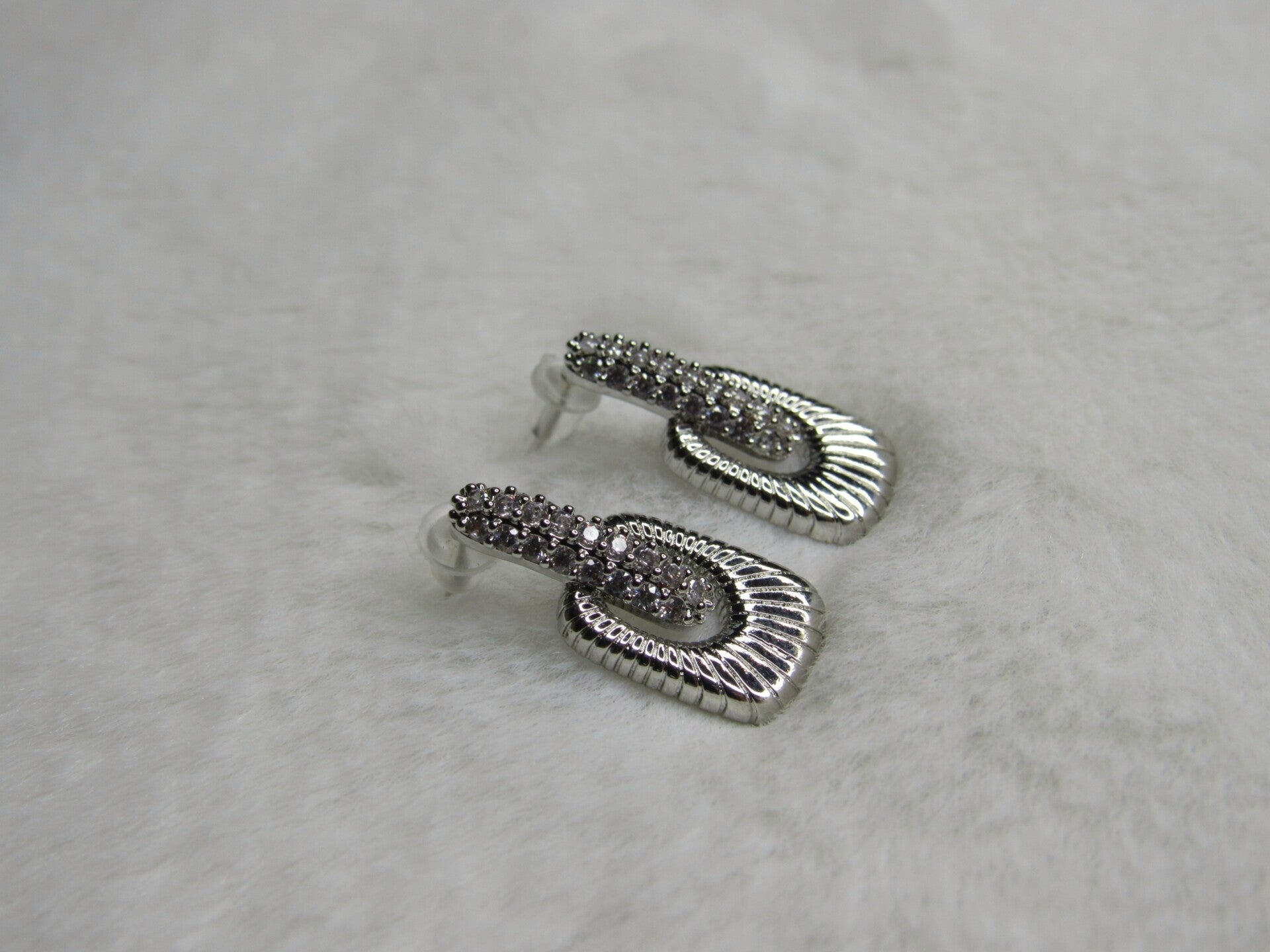 Add a touch of contemporary glamour to your collection with these stunning drop earrings. Featuring a unique combination of high-shine textured metal and brilliant pavé accents, these earrings are designed to capture the light from every angle. Tarnish-Resistant.