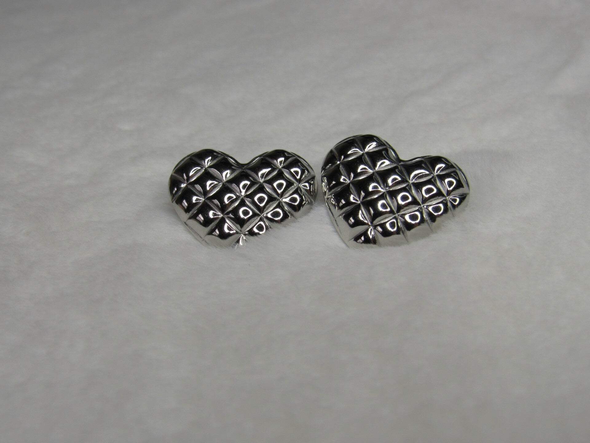 Give your style some heart with these statement studs. Ditching the plain flat surface for a high-fashion quilted pattern, these mix of classic and contemporary style earrings bring a designer-inspired touch to a classic romantic silhouette, includes a secure push-back closures. Tarnish-Resistant.
