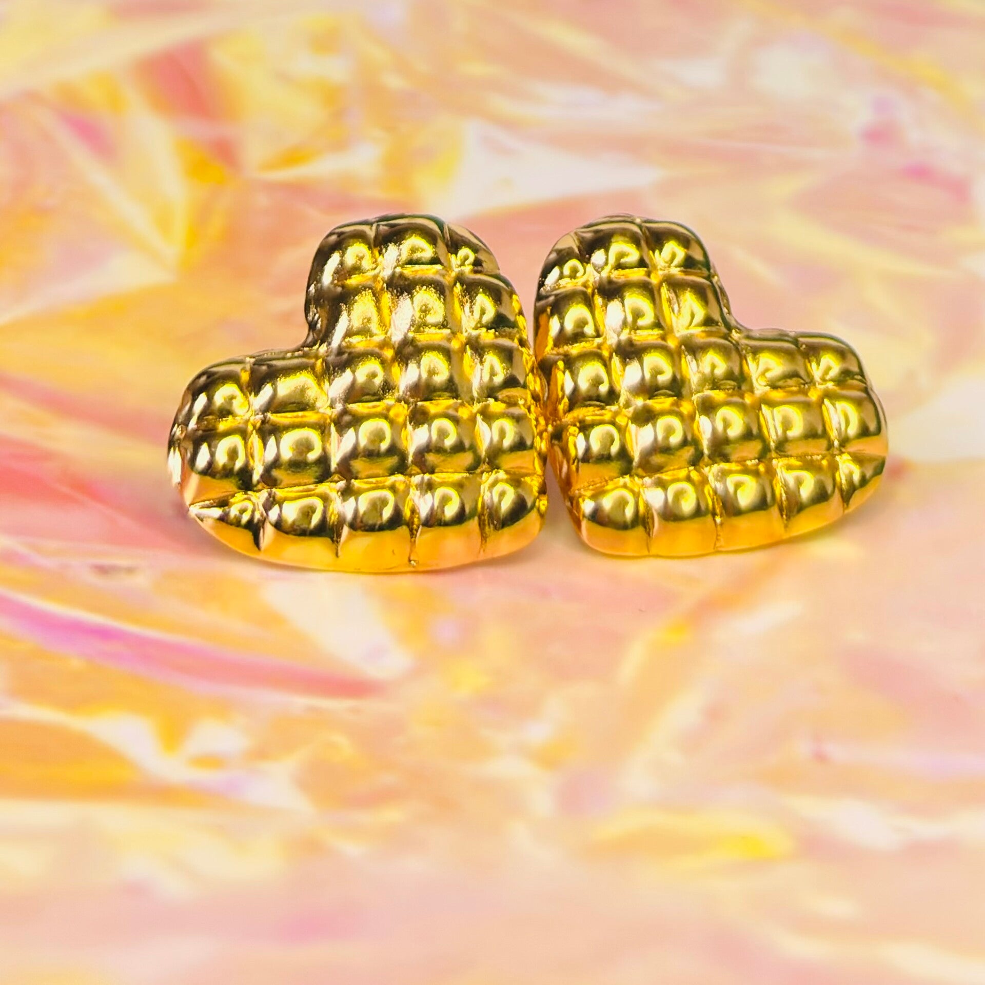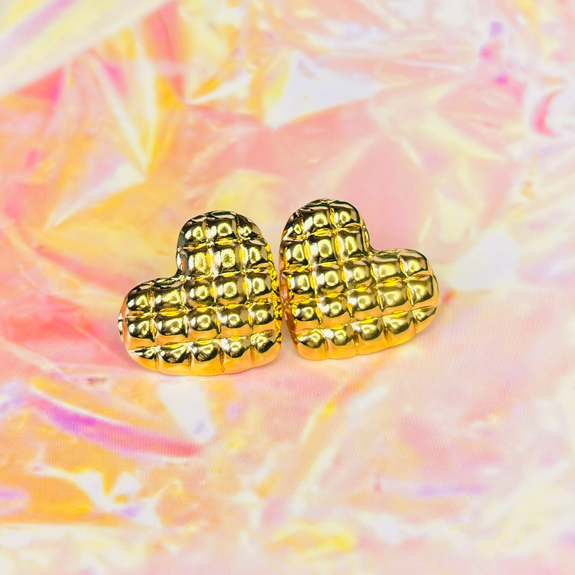 Give your style some heart with these statement studs. Ditching the plain flat surface for a high-fashion quilted pattern, these mix of classic and contemporary style earrings bring a designer-inspired touch to a classic romantic silhouette, includes a secure push-back closures. Tarnish-Resistant.